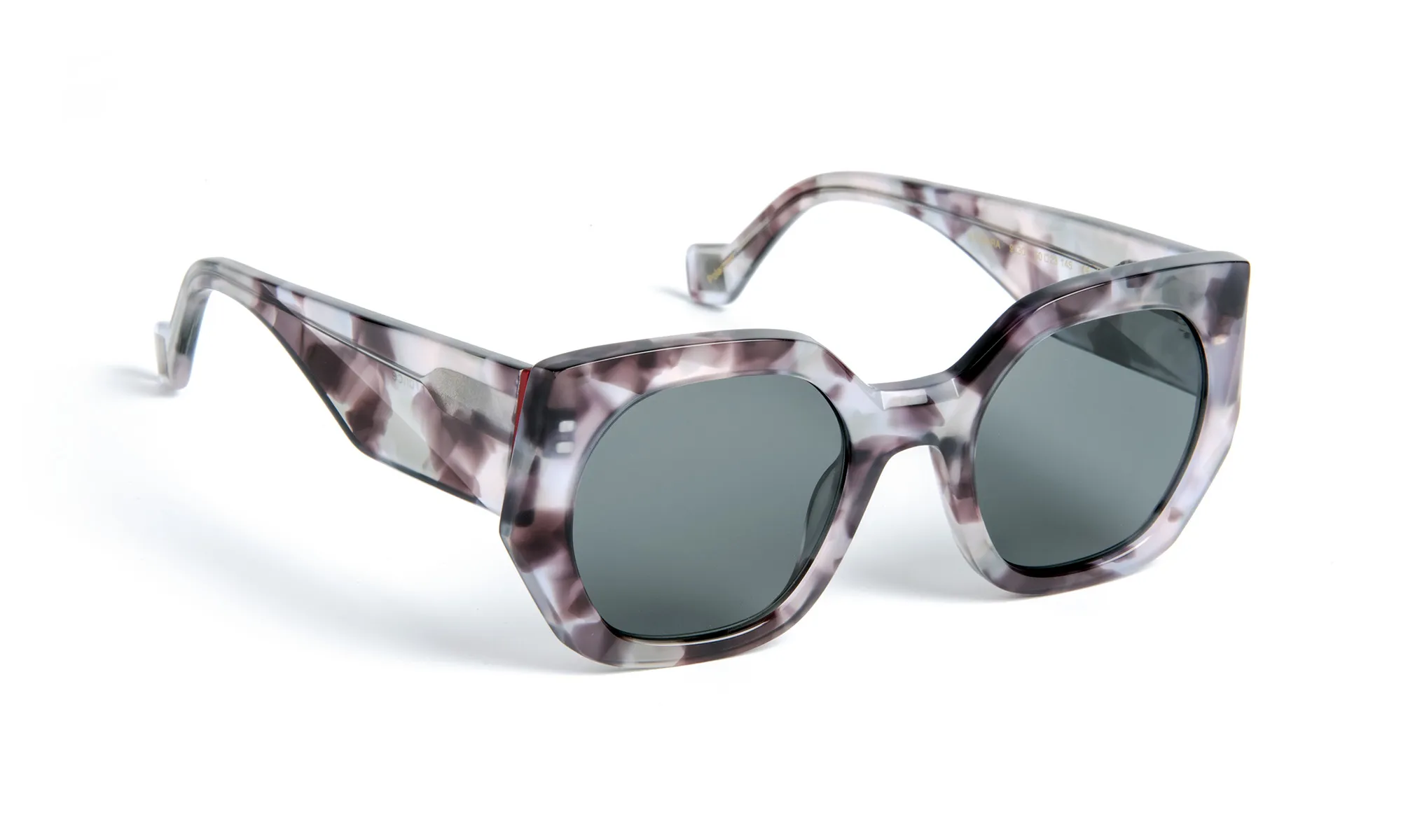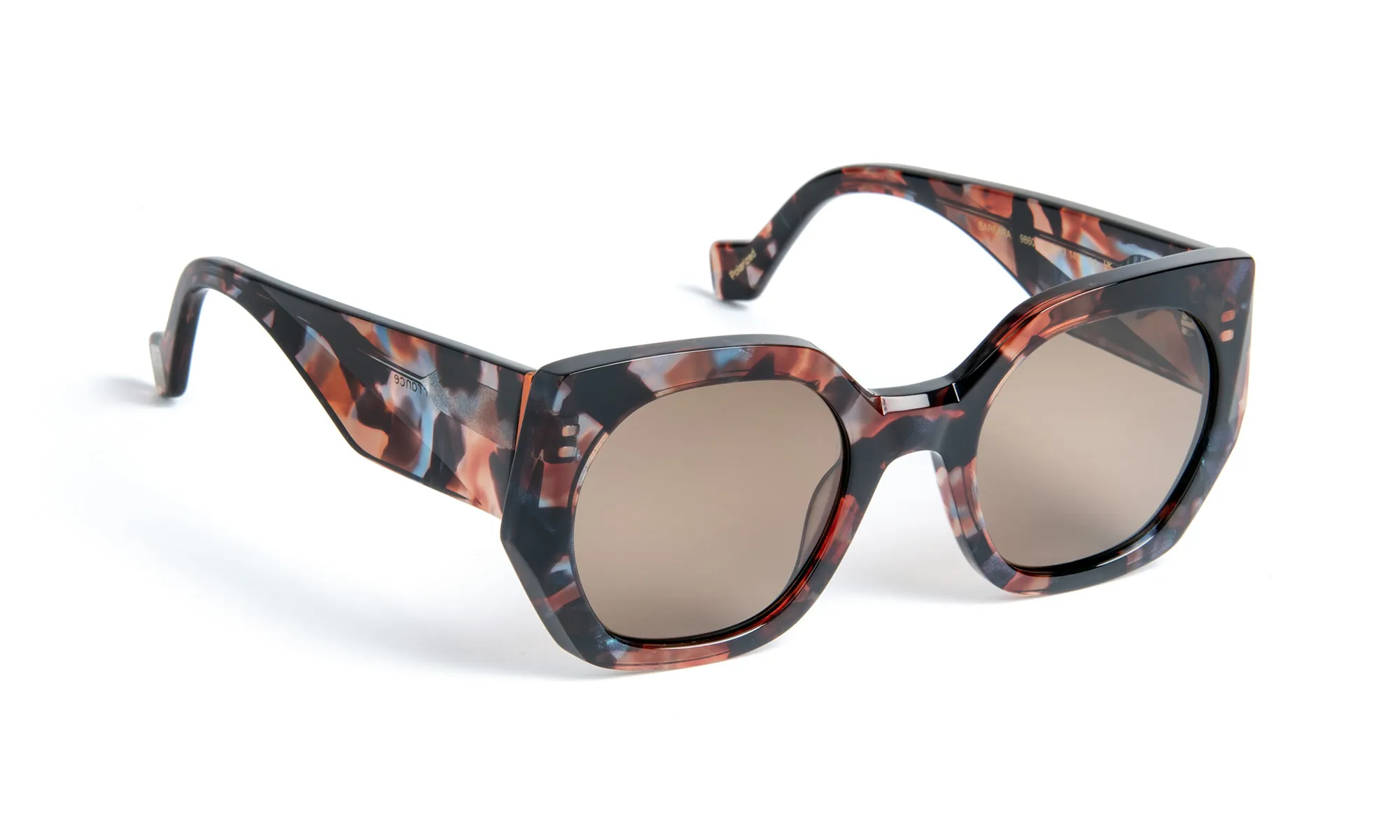 Monture solaire en acétate, au design raffiné sublimé par une finition facettée entièrement façonnée à la main. Ses branches larges, sculptées en creux, apportent des reflets subtils et ajoutent une touche de modernité. Le style se distingue par une palette de coloris en dégradés irisés, offrant des jeux de lumière et des nuances changeantes qui scintillent sur la face de la monture.