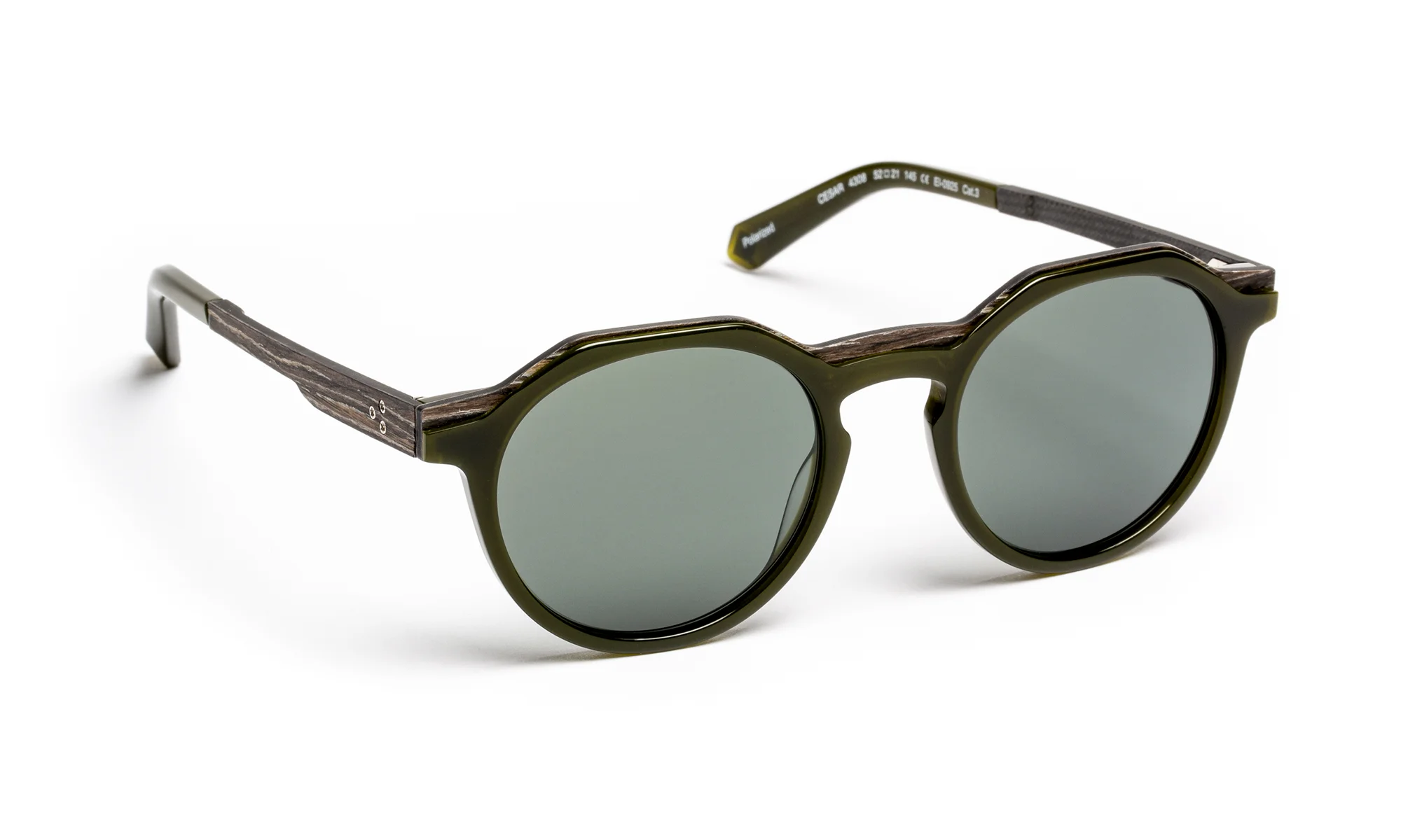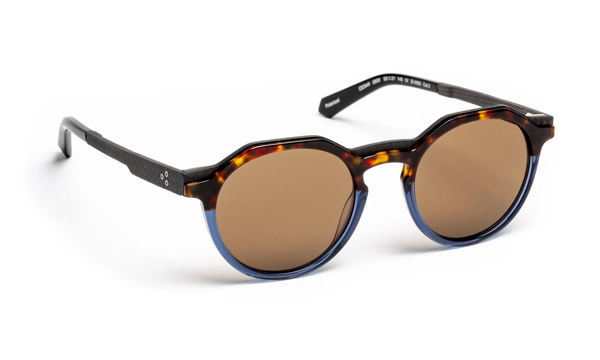 Pensé comme une alliance entre force et légèreté, ce modèle unit l’acétate au carbone dans une esthétique masculine, sobre et contemporaine. La structure en carbone, visible sur le nez et les tenons, révèle le motif unique de la fibre et renforce la finesse de la face. Les branches en carbone, prolongées par un manchon en acétate, équilibrent performance et élégance. Deux coloris se distinguent par une finition bois et carbone sur la face et les branches, soulignant le savoir-faire et l’esprit matière de la collection.