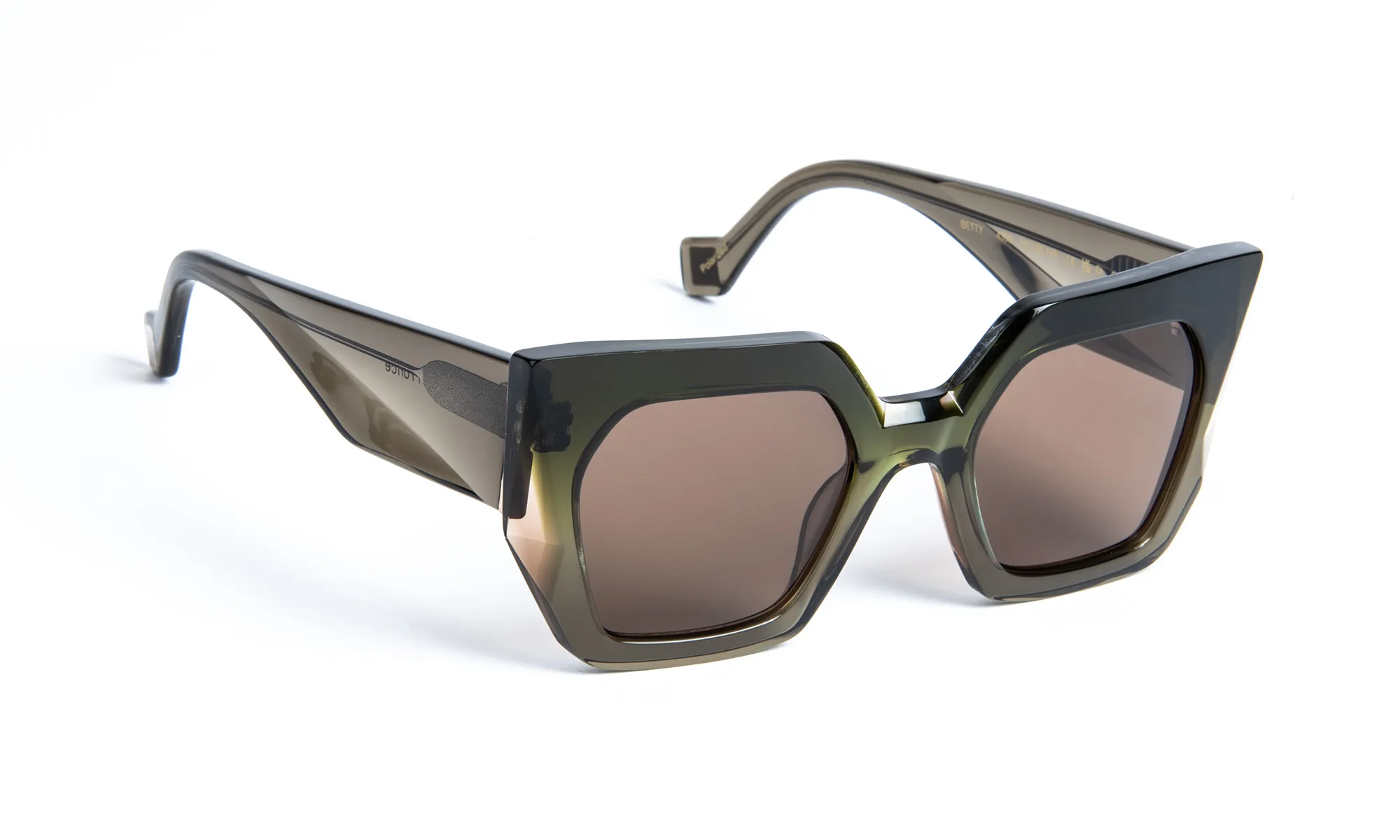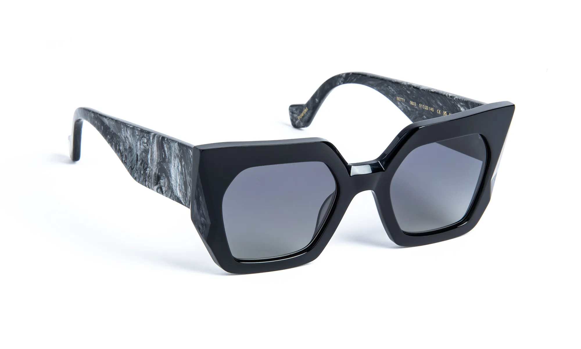 Sunglasses in acetate, with a refined design enhanced by an entirely hand-crafted faceted finish. Its wide, hollow-sculpted temples add subtle reflections and a touch of modernity. The style is distinguished by a palette of iridescent gradations, offering a play of light and changing shades that sparkle on the face of the frame.
