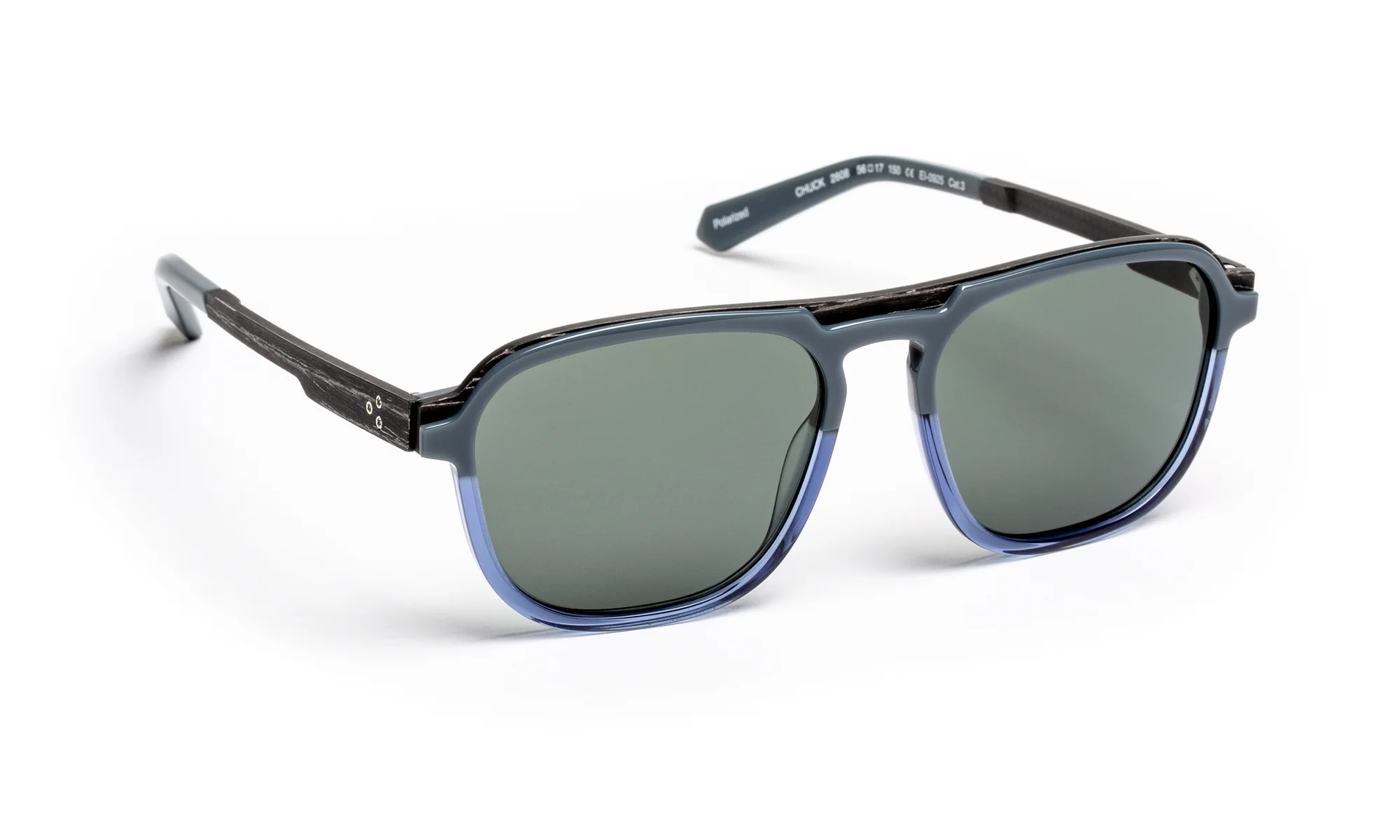 Designed as the perfect balance between strength and lightness, this model combines acetate and carbon in a masculine, pure, and contemporary expression. The carbon structure, visible on the bridge and end pieces, highlights the distinctive texture of the fiber and emphasizes the finesse of the front. The temples, crafted from carbon and extended with acetate sleeves, blend comfort, performance, and elegance. Two color variations stand out with a wood and carbon finish on the front and temples — a signature of refined craftsmanship and a true celebration of material beauty.