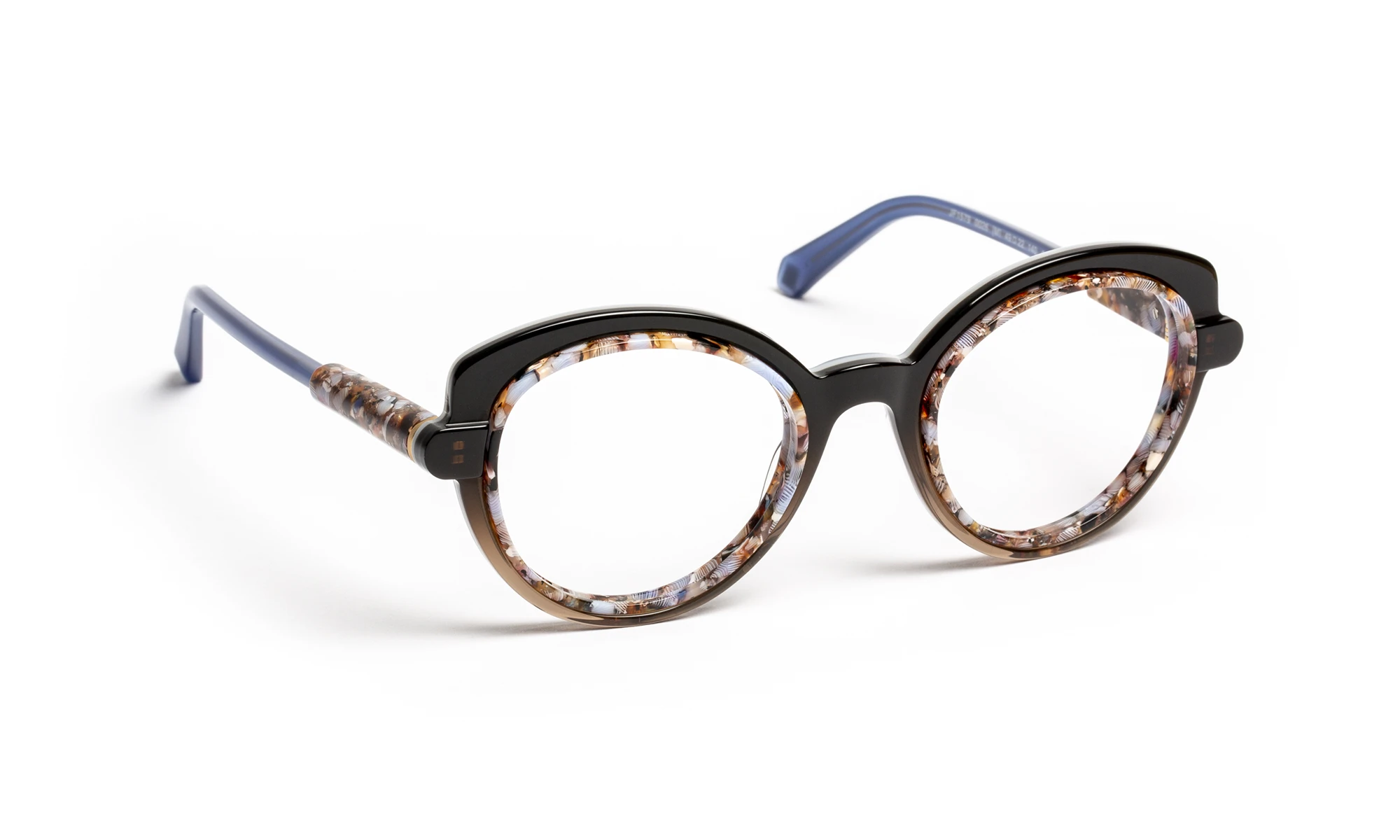 This model showcases the depth of acetate through a play of sculpted volumes and refined transparencies. Trend-forward gradient effects create subtle color variations that shift with the light. The elongated end-pieces enhance this visual richness, while the temples, featuring a totem-inspired design and a diamond-cut end tip, underscore the distinctive originality of the shape.