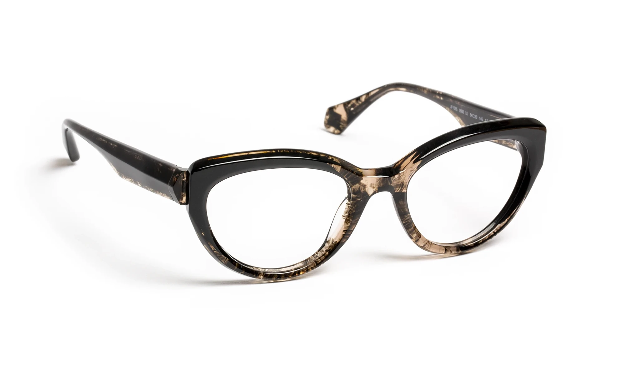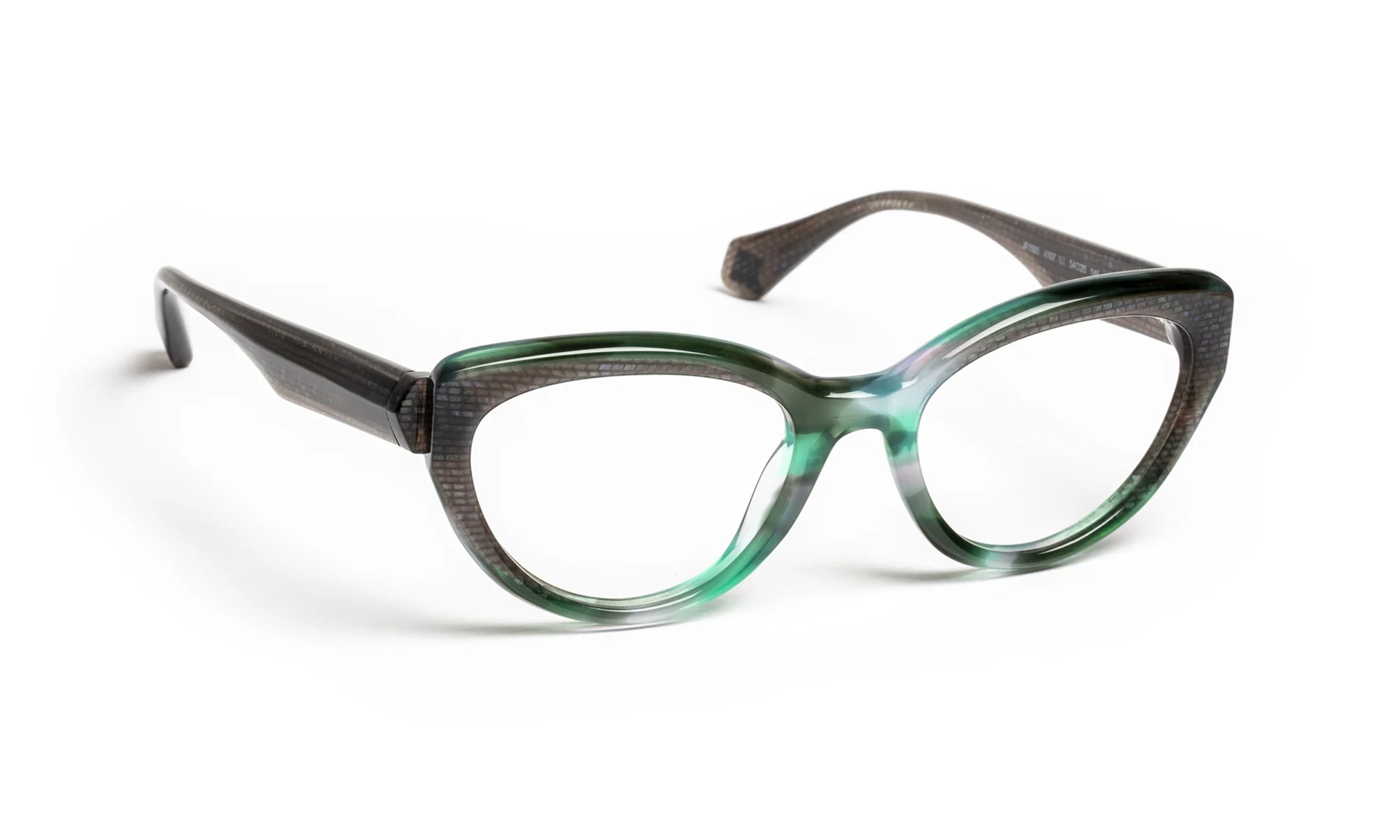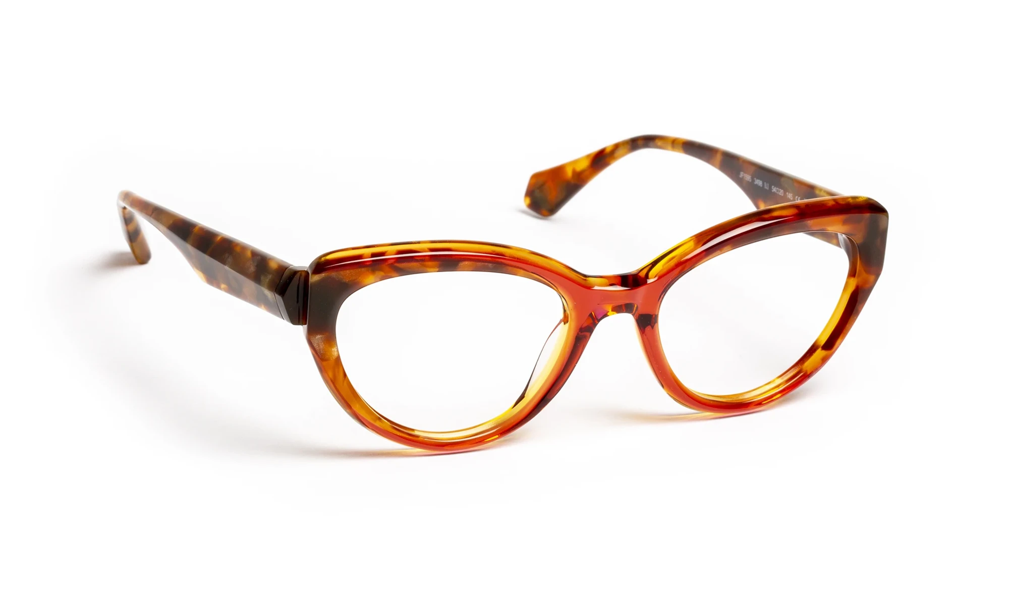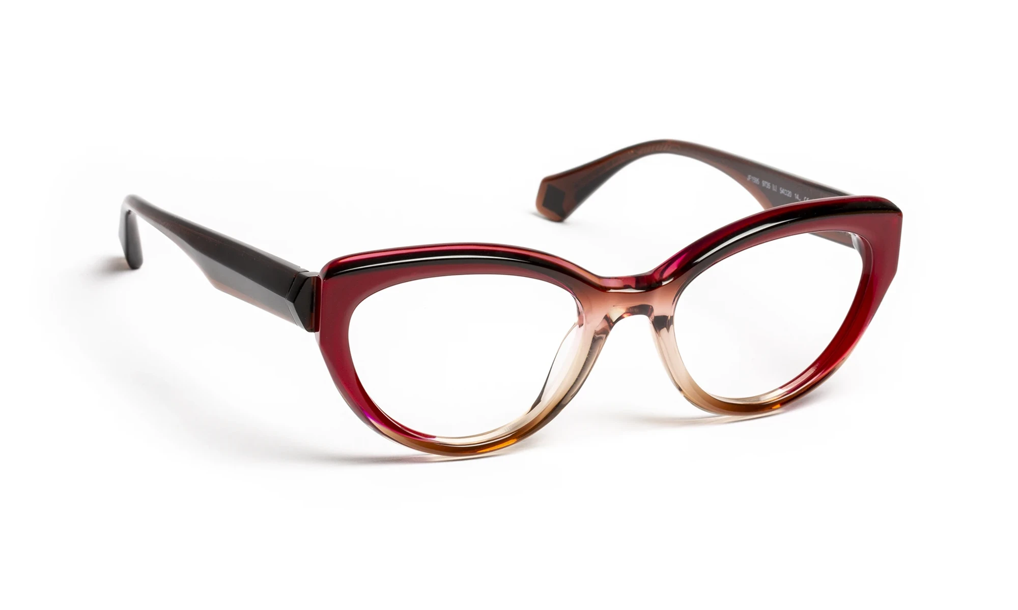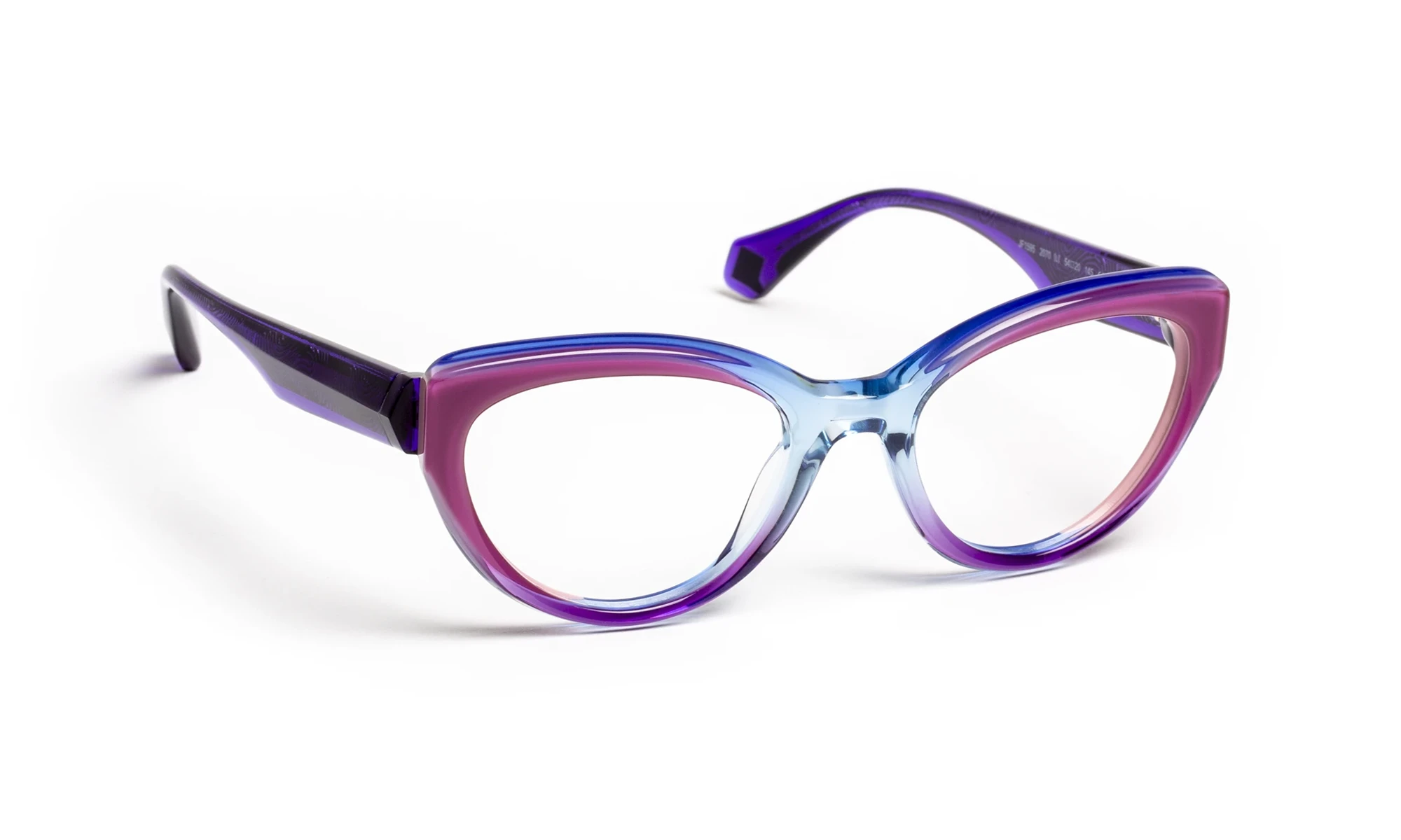 Design and color play with light thanks to transparent materials. Faceted volumes, precise bevels and translucent sparkles create a fashionable look with changing reflections. The triangular flex temple features a metal bristle with an engraved pattern that only appears in the light. Graduated translucent materials, mixed with colorful touches, offer a vibrant, elegant aesthetic.