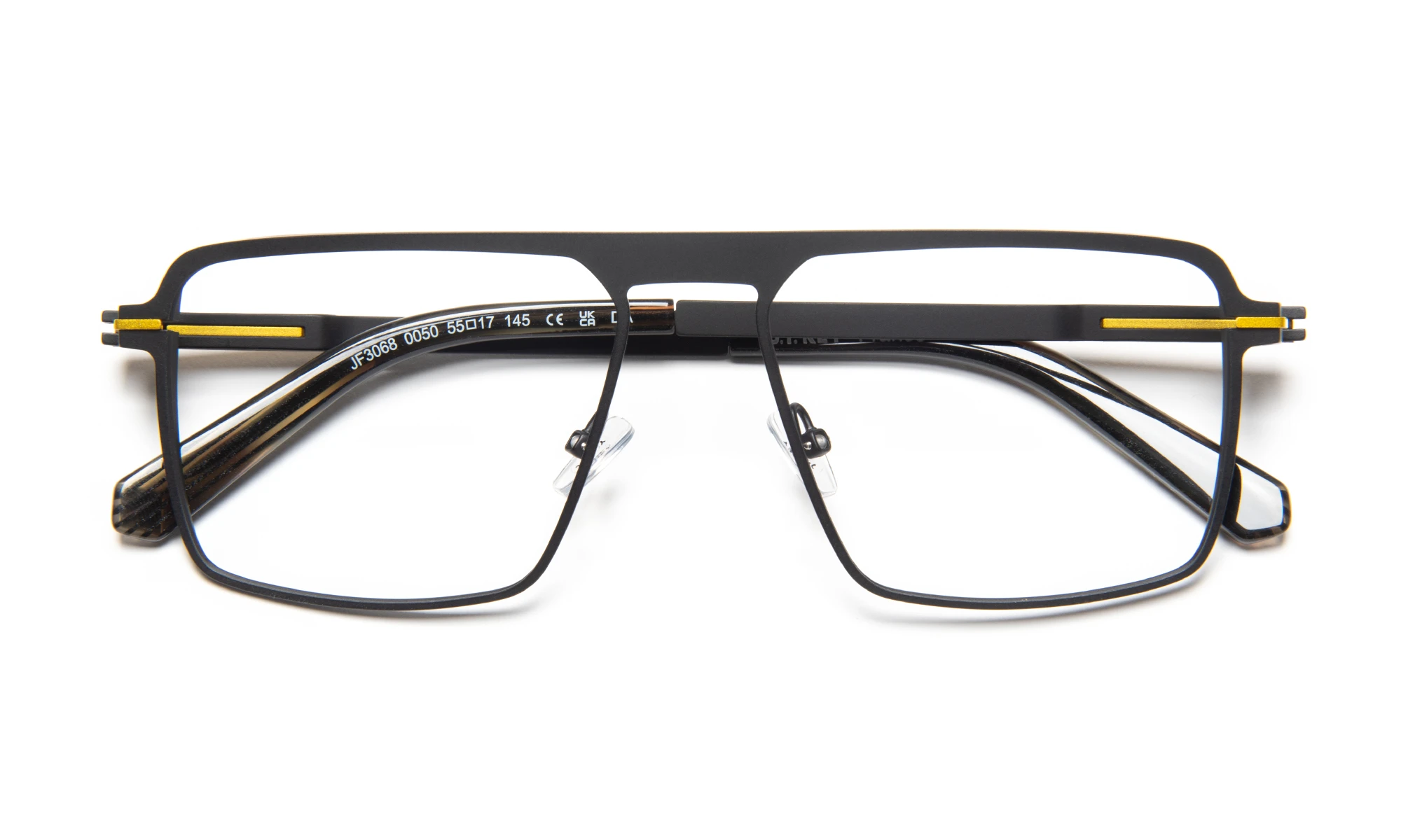 JF3068 est une monture en titane face et branches, manchons en acétate et inserts décoratifs en carbone. Son originalité tient dans le design d’une charnière exclusive flex sans vis. Pensée pour être fonctionnelle et esthétique, sa présence minimaliste est mis en valeur par la couleur, une signature visible face et branches que l’on retrouve déjà sur de nombreux modèles pour homme de notre collection.