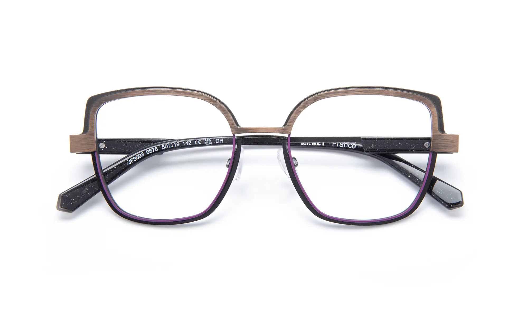 Monture en métal qui allie finesse, confort et design original. Son jeu de trois couleurs subtilement contrastées est sublimé par une touche d’acétate, apportant une quatrième nuance sophistiquée. Les branches associent métal et acétate dans un équilibre parfait, avec des teintes coordonnées pour un style moderne et harmonieux. Une monture légère, audacieuse et pleine de caractère.