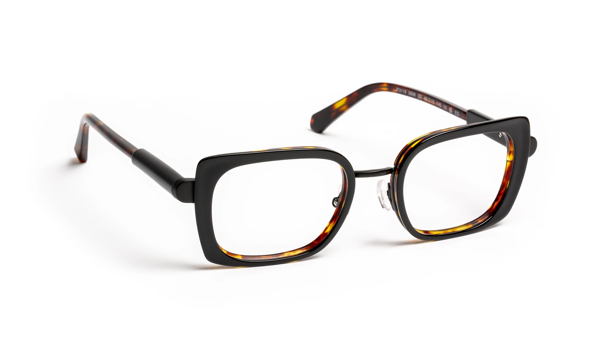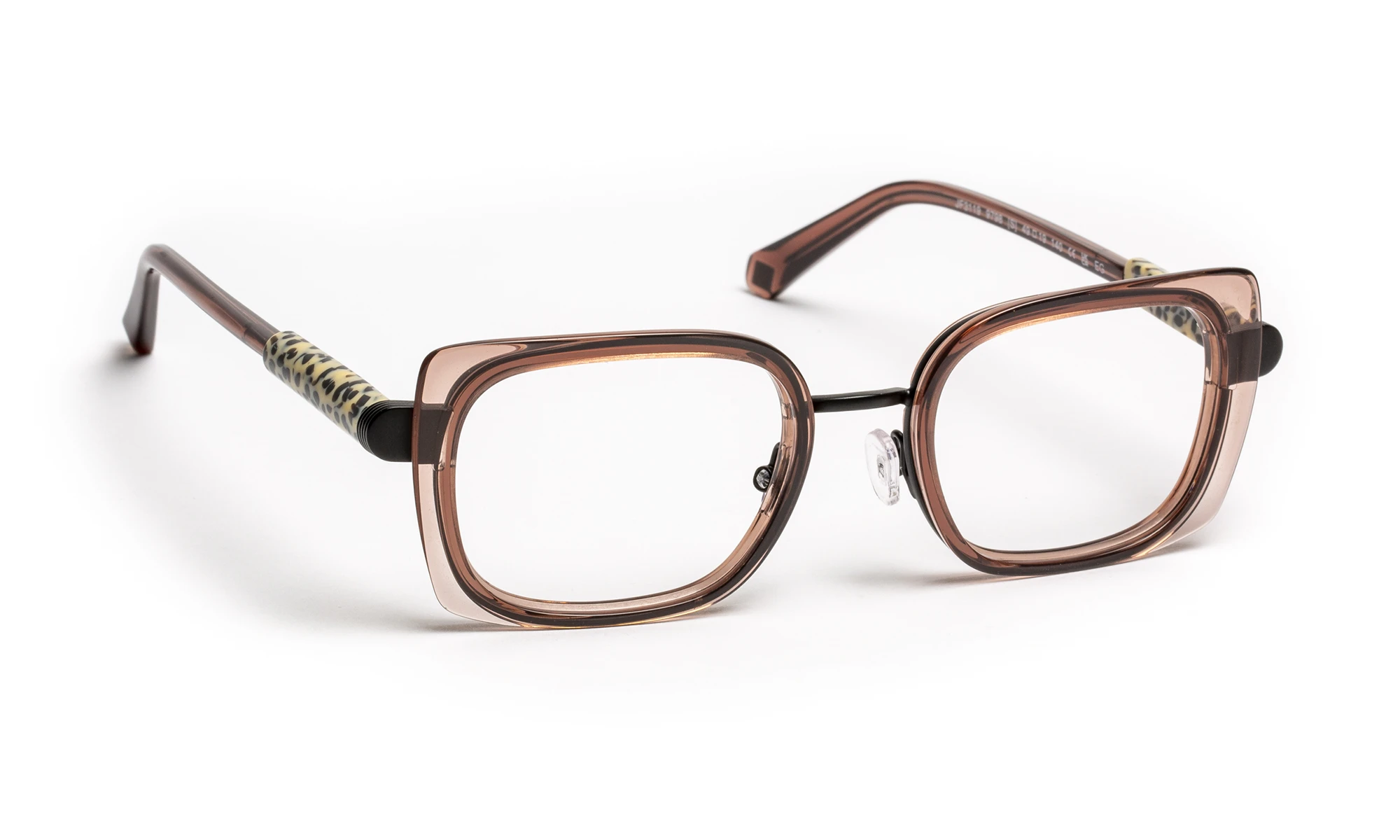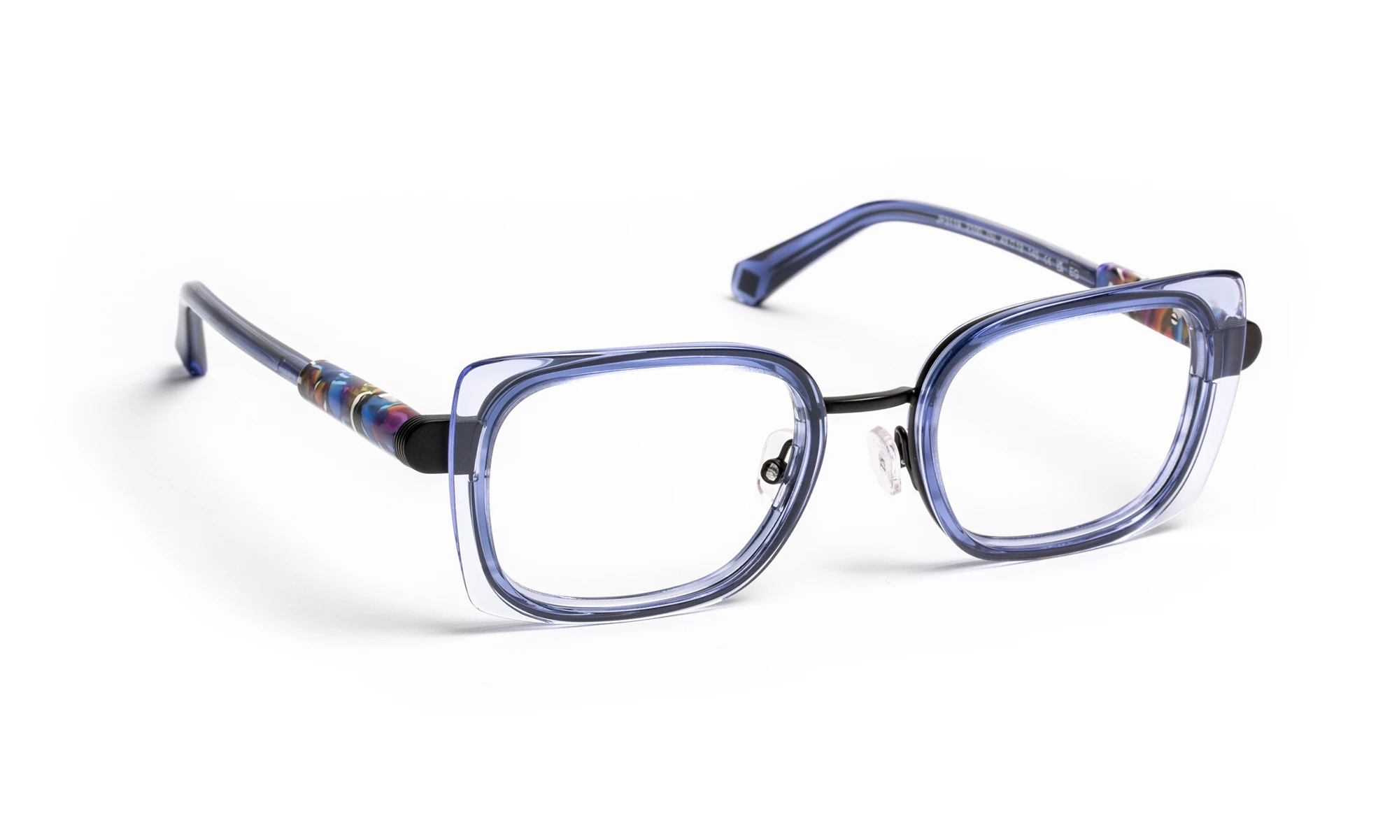 Né d’un dialogue entre métal et acétate, ce modèle unit matière et lumière dans un jeu d’équilibre raffiné. La face en métal enveloppe des cercles biseautés qui captent la transparence, tandis que les branches en acétate révèlent des reflets changeants.