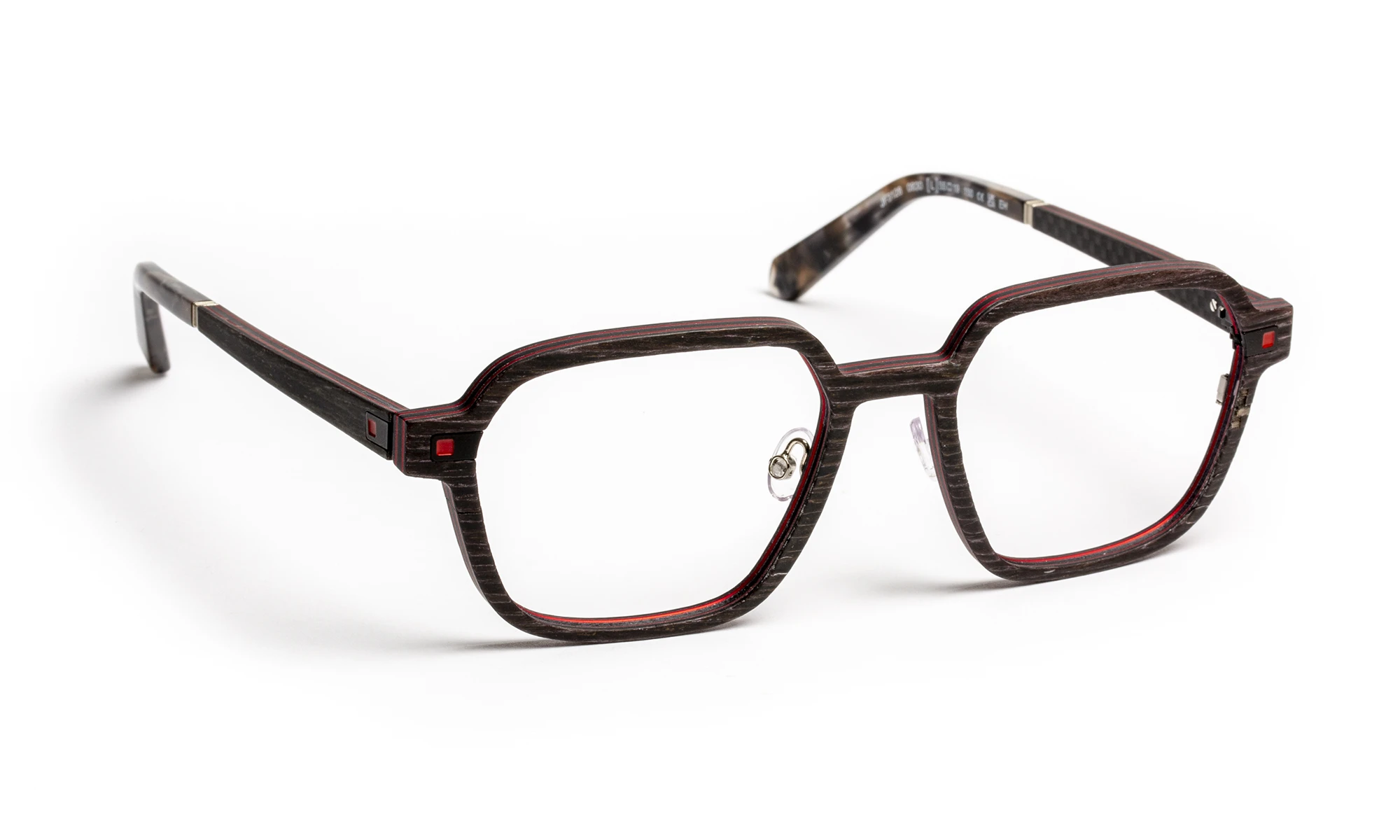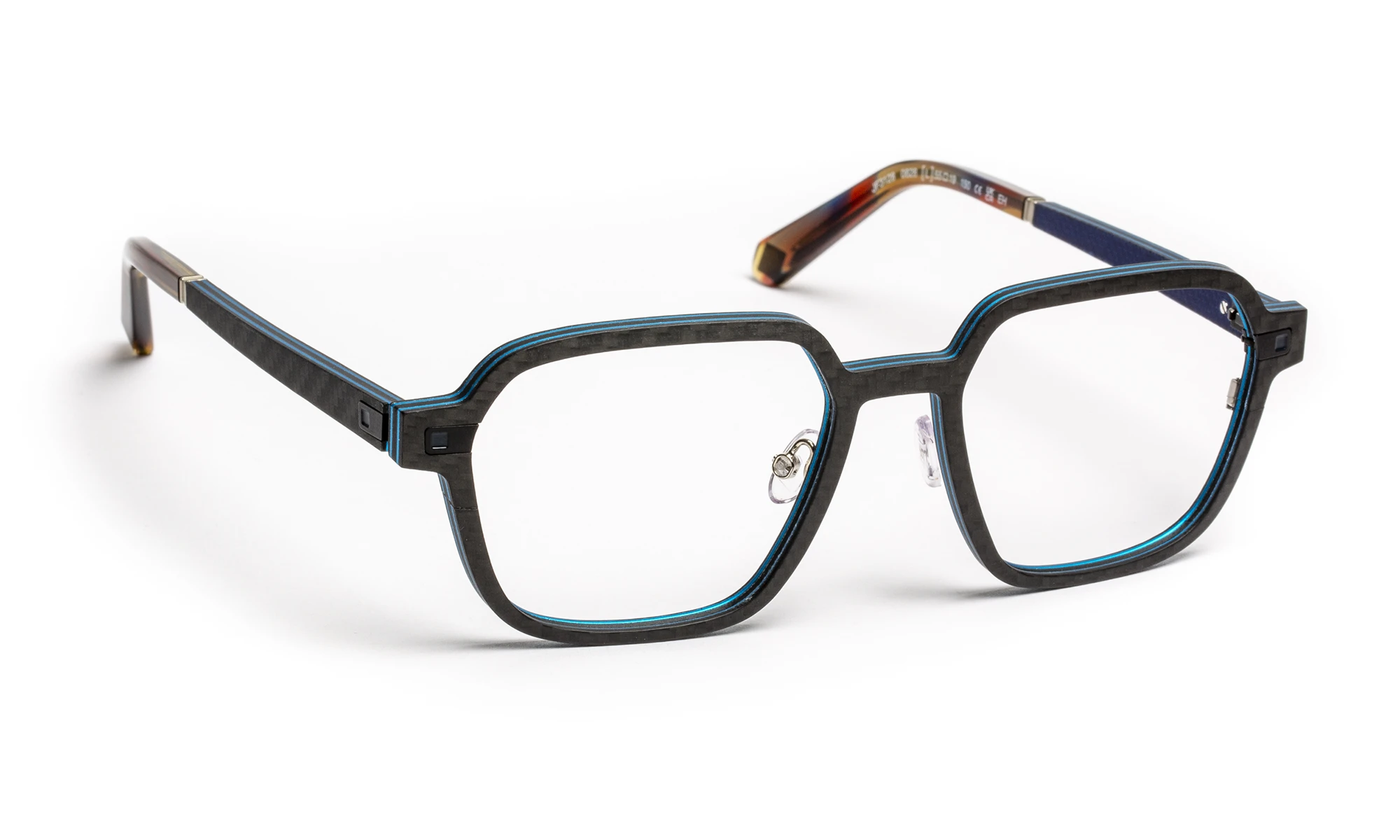 Monture multi-matériaux alliant fibre de carbone et aluminium dans une conception exclusive, entièrement dépourvue de visserie à l’exception du drageoir et des plaquettes de nez. Elle intègre une charnière flex sans vis en acier inoxydable, offrant performance, confort et élégance.