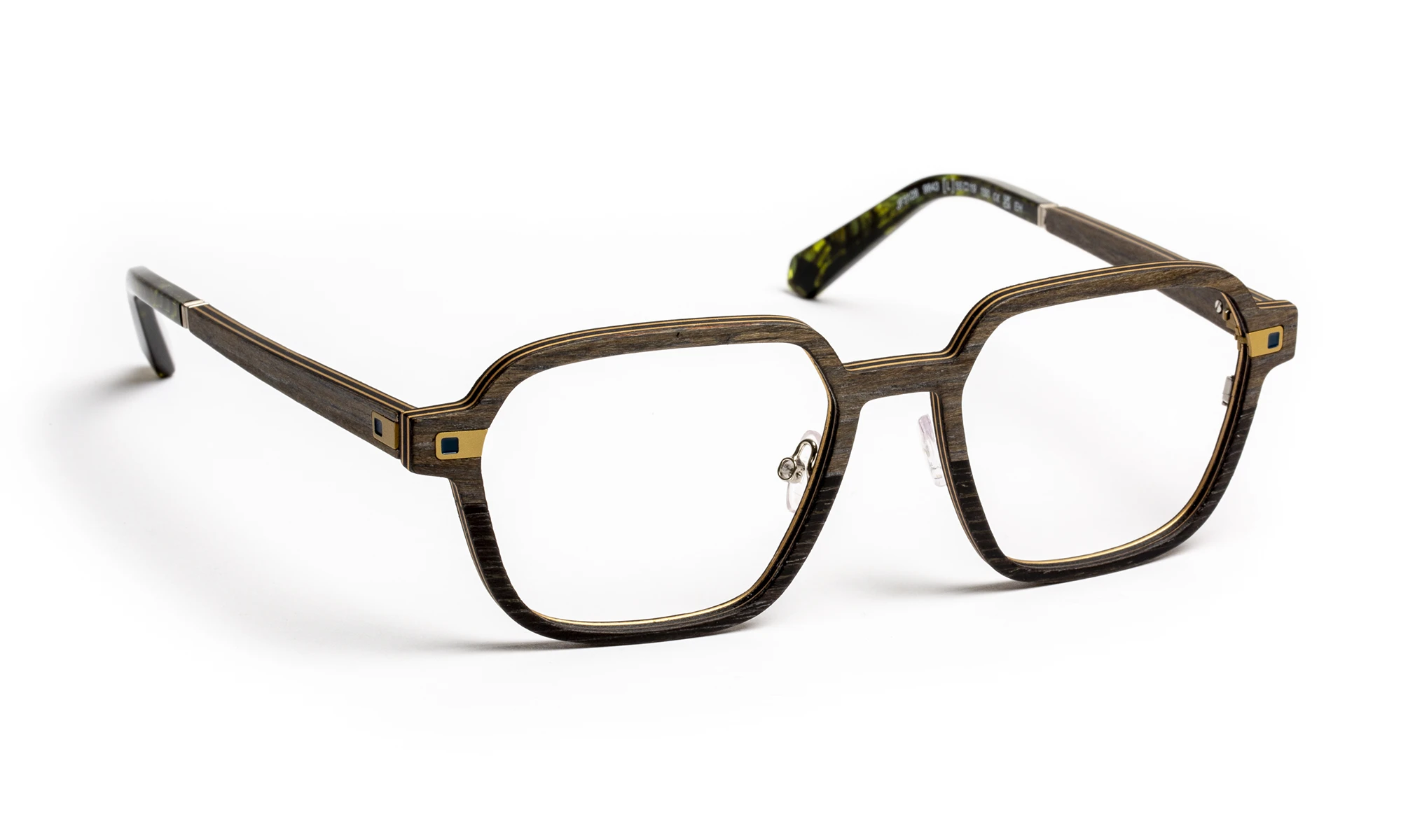 La monture est entièrement sans vis, grâce à un assemblage Snap-fit réalisé à la main. Elle intègre une charnière flex brevetée, en acier inoxydable et titane, offrant une ouverture fluide et durable.