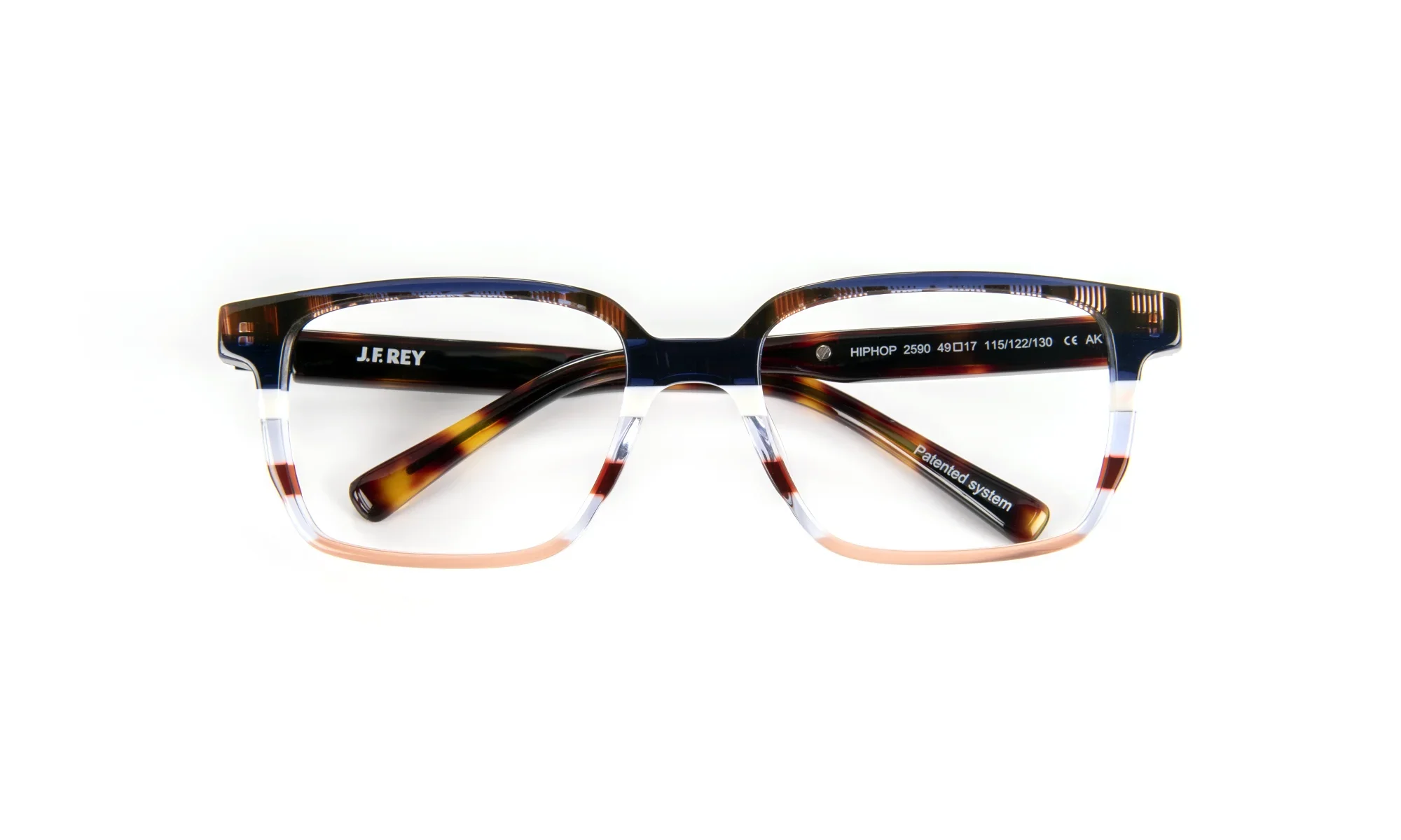 Monture en acétate durable et hypoallergénique, offrant un équilibre parfait entre confort et respect de la peau. Sa forme rectangulaire s’associe élégamment à une gamme de coloris variés, alternant teintes translucides, rayures larges et motifs graphiques texturés pour un look moderne et sophistiqué.